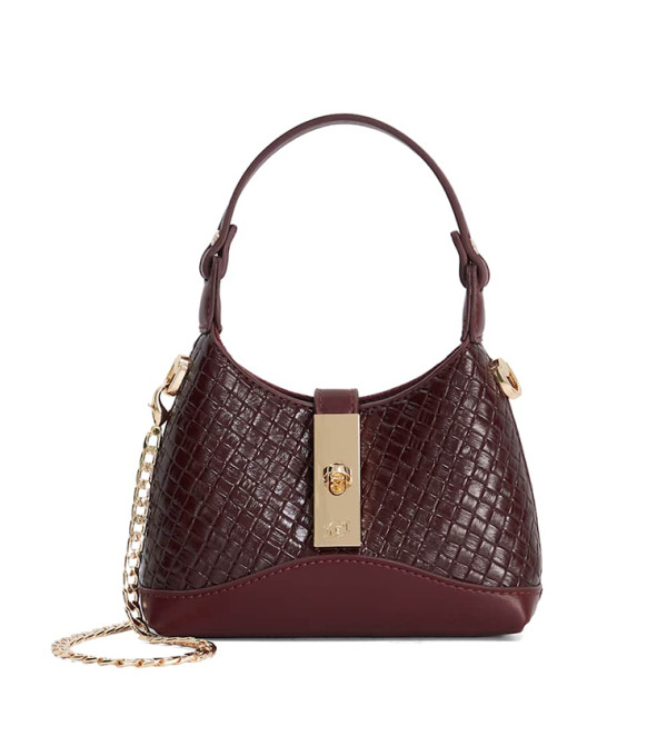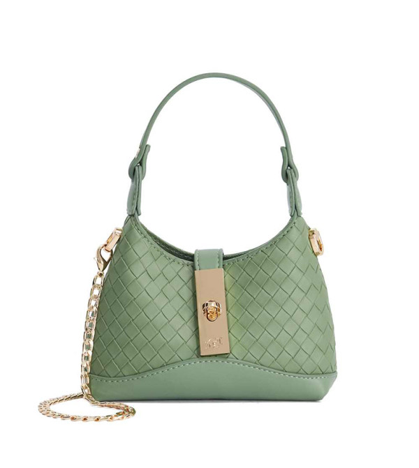 A stylish woven-texture handbag with elegant gold-tone hardware. Designed with a top handle, detachable chain strap, and secure front lock, it’s the perfect compact bag for both day and evening looks.